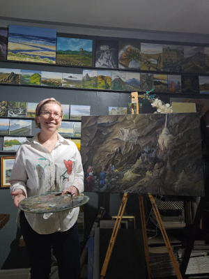 This evocative painting captures the historic post mill at Avoncroft Museum of Historic Buildings in Bromsgrove, UK. Standing proudly against a soft, cloud-strewn sky, the wooden windmill dominates the composition with its weathered timbers and towering sails. The artist carefully renders the warm tones of the mill’s brick base, balancing structural solidity with the lightness of the open countryside. Figures in the foreground, leisurely walking and resting, imbue the work with a sense of timeless rural life—linking the centuries-old technology of the windmill with the human stories it once sustained. The interplay of light and shadow across the grass evokes a late afternoon calm, reinforcing the painting’s atmosphere of nostalgia and quiet reflection.